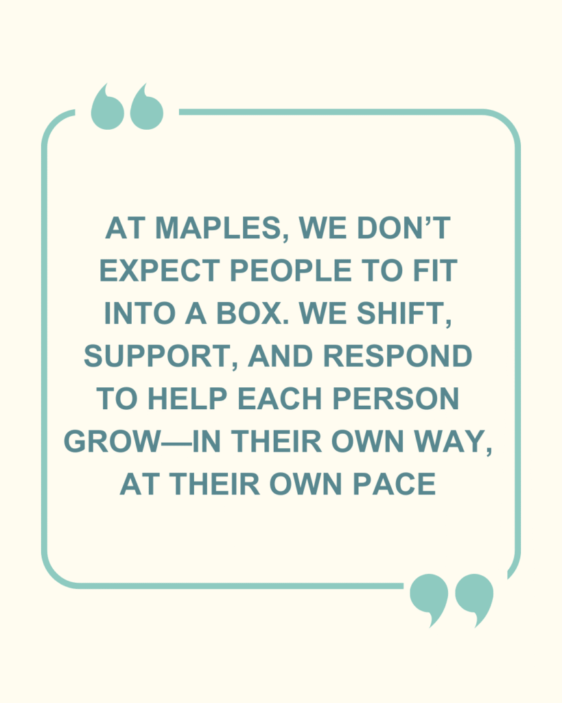 At Maples, we don’t expect people to fit into a box. We shift, support, and respond to help each person grow, in their own way, at their own pace.